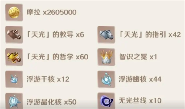 浮游晶化核:36个,找相关boss直接刷。