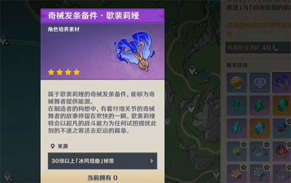 奇械发条备件·歌裴莉娅:46个,在枫丹npc处挑战裴莉娅可以刷。