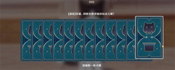 出现四个选项,选择不如两边都放着不管,出现道具让我们抽牌。