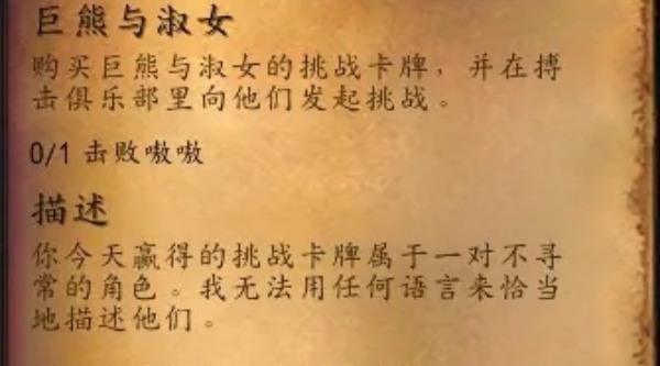 魔兽世界巨熊与淑女任务触发条件是需要在指定位置购买巨熊与淑女字样的卷轴就可以接取任务了,但是需要注意,部落玩家和联盟玩家接取任务的地点不一样。