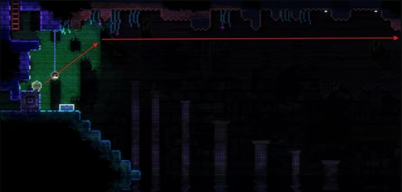4、跳上隐藏的平台之后,上左切到苦痛之路,然后存档。