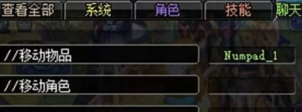 2、接着在左侧下方找到聊天快捷键,然后在左侧输入//移动物品。