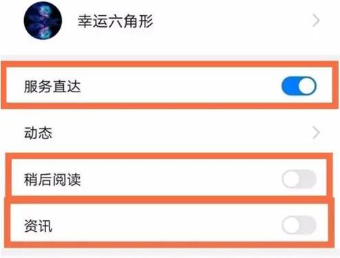 3、关闭直达服务,稍候阅读,调控三项功能。