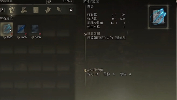 2、学习辉石流星需要3000卢恩,但这非常的划算,因为这个法术可以起到很大的作用。